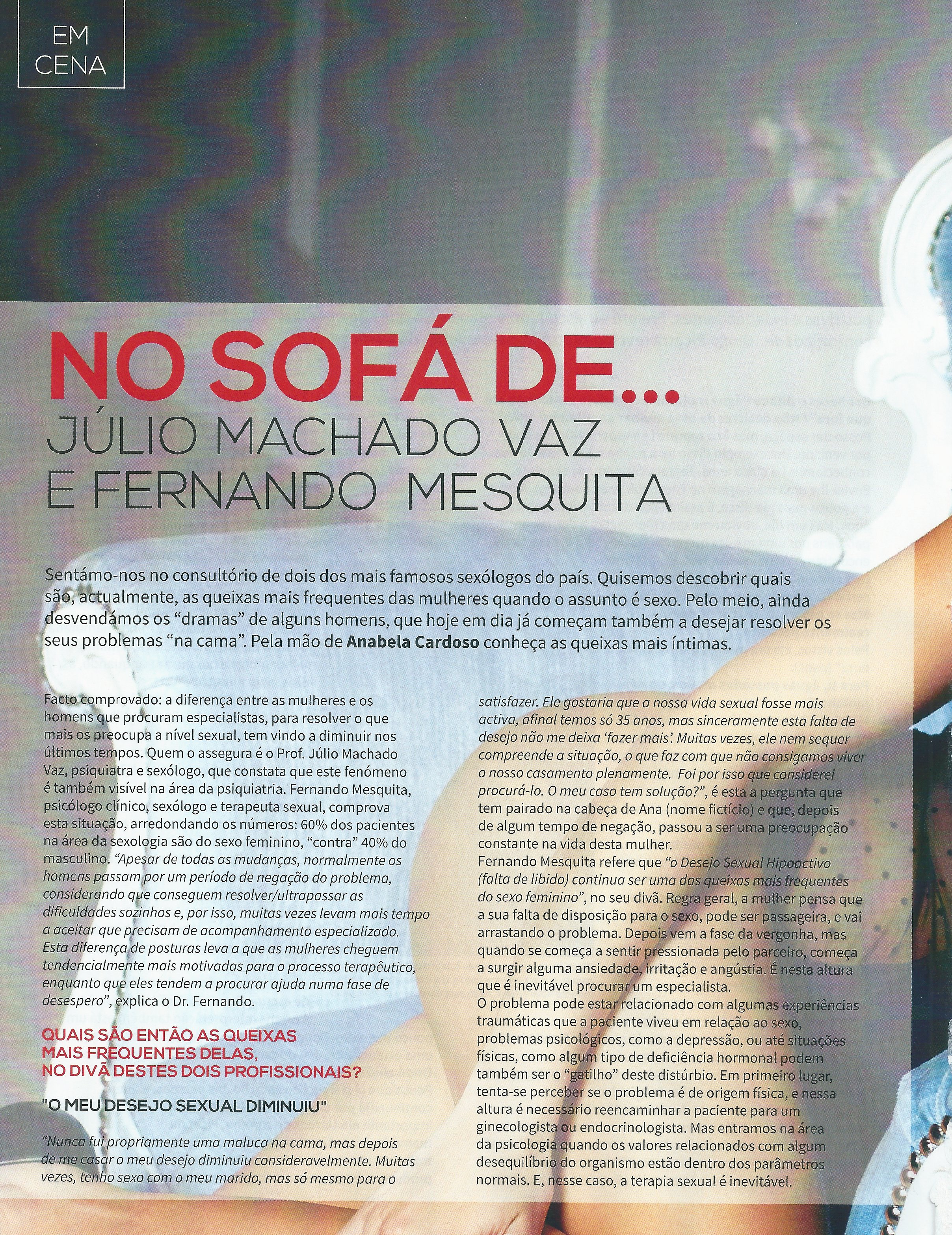 Sentámo-nos no consultório de dois dos mais famosos sexólogos do país. Quisemos descobrir quais são, actualmente, as queixas mais frequentes das mulheres quando o assunto é sexo. Pelo meio, ainda desvendámos os "dramas" de alguns homens, que hoje em dia começam também a desejar resolver os seus problemas "na cama". Pela mão de Anabela Cardoso conheça as queixas mais íntimas.