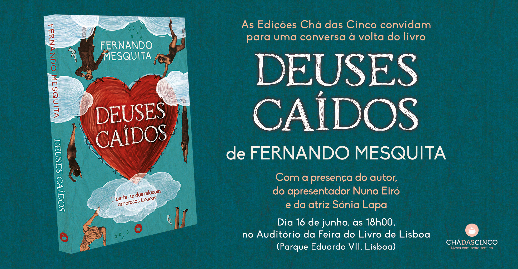 “Apresentam-se como autênticos deuses. Aos nossos olhos não têm defeitos. Fazem-nos acreditar que são especiais, e isso leva-nos a sonhar com uma vida a seu lado. Porém, com o passar do tempo, começamos a ver o seu verdadeiro ADN! Pouco a pouco, encontramos um defeito… e depois outro… e outro”, podemos ler na contracapa de Deuses Caídos, uma obra editada pela editora Chá das Cinco. O livro será apresentado dia 22 de janeiro, segunda-feira, pela atriz e apresentadora Diana Chaves.