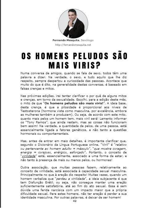 "O homem é logo avaliado pela sua ereção. A ereção é o sinal para a outra pessoa de que ele está disponível, antes de estar junto o homem já está a ser avaliado. Nesse aspeto, existe uma maior pressão sobre os homens do que sobre as mulheres — é mais difícil perceber a disponibilidade das mulheres."